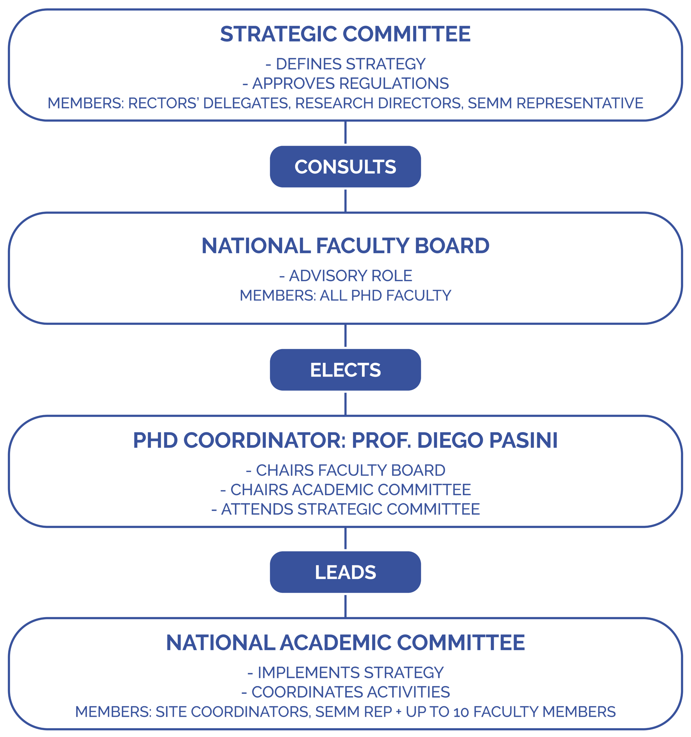 National Academic committee members: Pasini Diego (chair), De Matteis Antonella (TIGEM), Amati Bruno (SEMM), Bodega Beatrice (INGM), Bonaldi Tiziana (IEO), Ciliberto Andrea (IFOM), De Maria Ruggero (UNICatt), Missero Caterina (Ceinge), Pesole Graziano (UNIBA), Rescigno Maria (Humanitas), Segata Nicola (UNITN)